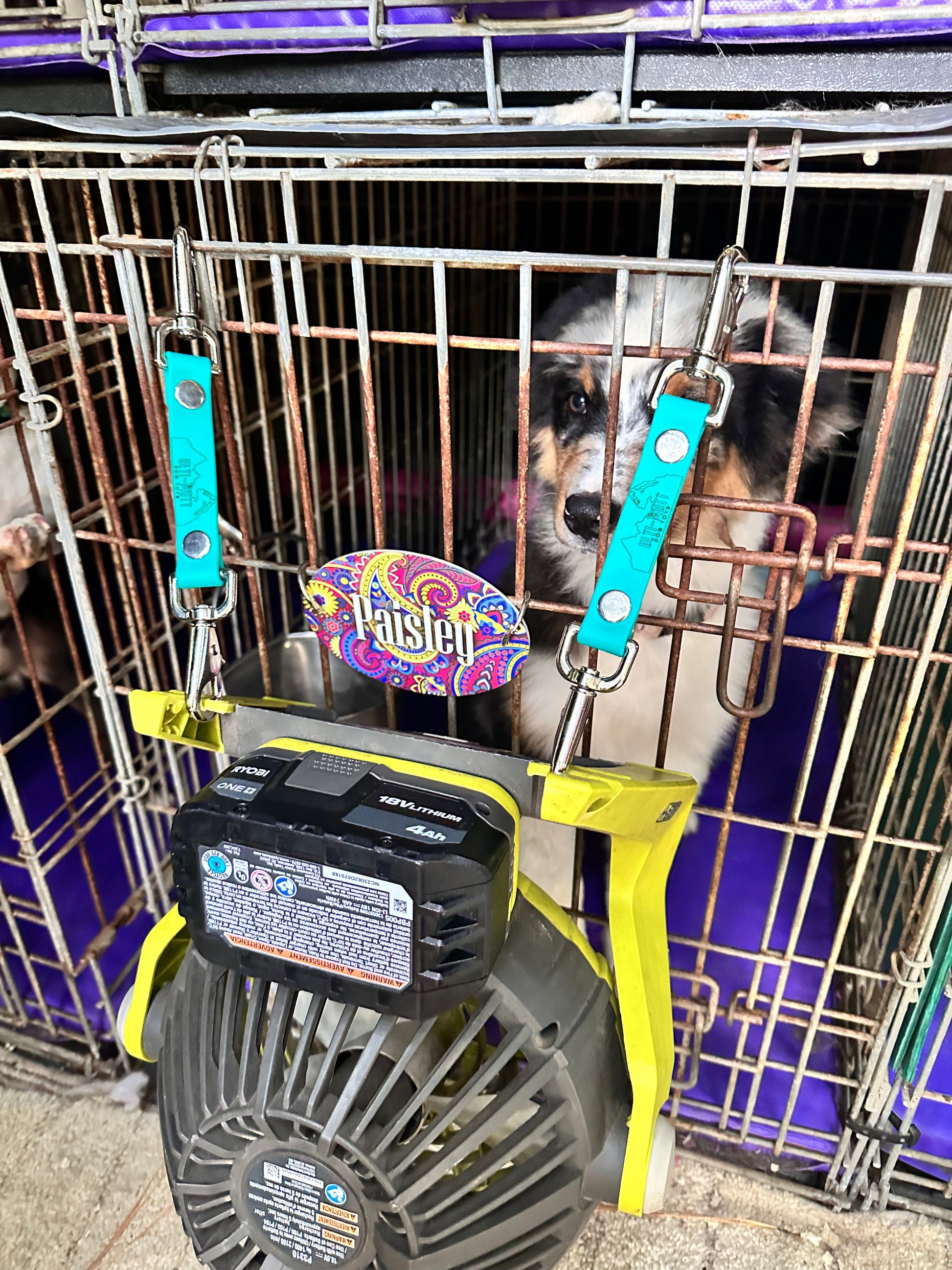 The Ulti-Mutt Toys Double Clip Fan Strap Set is the ultimate solution for securely mounting a fan to your dog's crate, especially on those warm competition days, long road trips, or just in a sunny corner of the house.